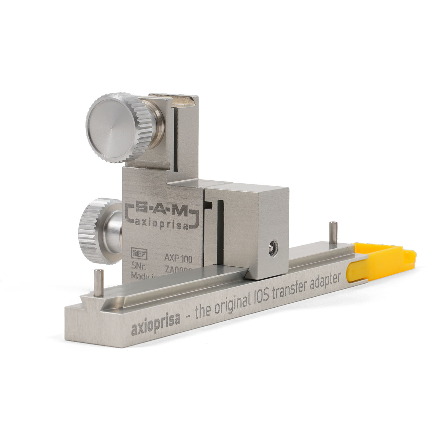 Сборка переноса Axioprisa прикреплена к переносной дуге SAM обычным способом. Благодаря комбинации Axioprisa и переносной дуги можно сканировать верхнюю челюсть в правильном анатомическом положении. Франкфуртская горизонталь — это плоскость, используемая всеми артикуляторами SAM. Используя этот путь, можно переносить положение челюсти с дополнительным сканированием во время внутриротового сканирования. Путь к простым процессам в стоматологической практике позволяет свести источники ошибок к минимуму.