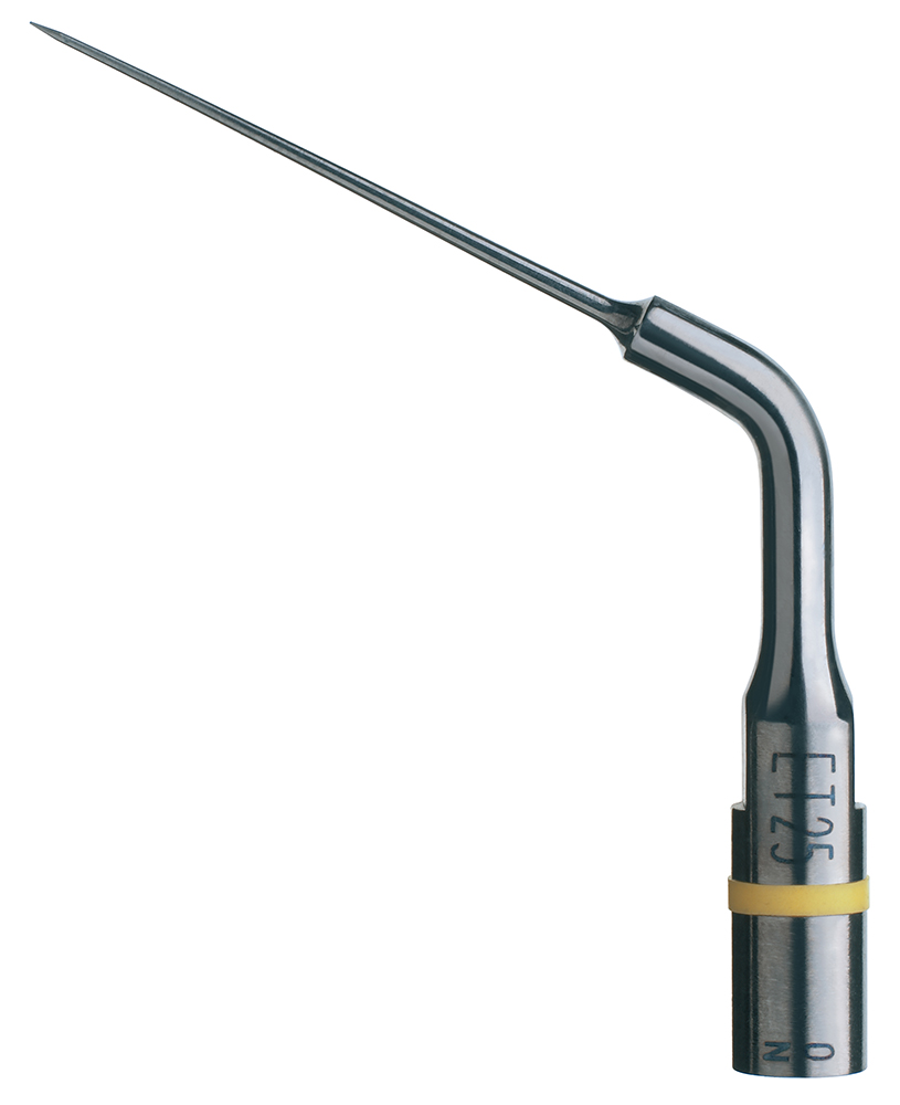 Эта насадка из титан-ниобиевого сплава была разработана для самых сложных операций в средней и апикальной трети канала. Длина 25мм, конусность 3%. Идеальна для удаления обломков инструментов и серебряных пломб. Насадка с ирригацией. Использование нового титан-ниобиевого сплава обеспечивает оптимальное применение ультразвука в самых сложных случаях. Этот сплав был выбран из-за его непревзойдённых механических характеристик, благодаря которым он способствует достижению оптимального клинического результата. Благодаря своей микро-кристаллической структуре материал обладает высоким коэффициентом устойчивости, обеспечивающим большую прочность во время интенсивной работы на высокой мощности. Серия насадок ET25 специально адаптирована под эндодонтическое перелечивание и особенно для извлечения обломков инструментов: