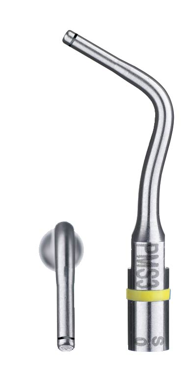 После препарирования в поддесневой области (насадка PM1) следует финишная обработка насадкой PM3 (или PMS3), в зависимости от выбранного профиля, для окончания процедуры обработки. Она удаляет любые оставшиеся шероховатости с препарируемой поверхности. Она также имеет лазерную маркировку, находящуюся на расстоянии 1 мм от края её активной части. Эти насадки имеют значительное преимущество при формировании текстуры поверхности дентина по сравнению с бором и используются для ультразвуковой финишной обработки.