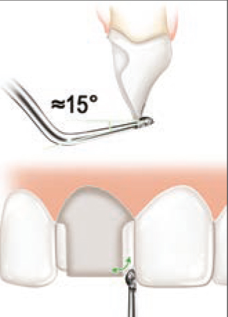 Применение этого типа инструментария является очень простым: зона обработки сохраняется чистой, данная процедура безболезненна для пациента и экономит время препарировании под керамические виниры.